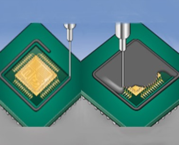 Dam & fill 用于半导体芯片及元器件封装,起加固抗震以及防尘防水作用。